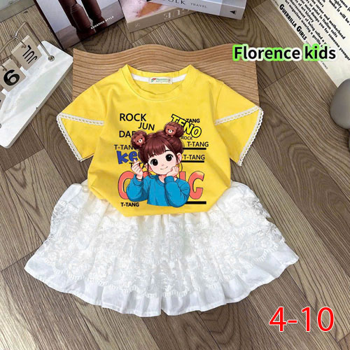 A485546 - Set váy thiết kế siêu cute áo thun cotton 4c in cô bé chân váy ren_Size 4-10