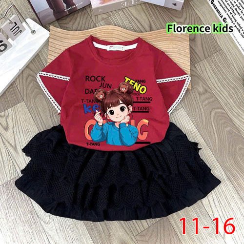 A485551 - Set váy thiết kế siêu cute áo thun cotton 4c in cô bé chân váy ren_Size 11-16