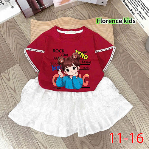 A485552 - Set váy thiết kế siêu cute áo thun cotton 4c in cô bé chân váy ren_Size 11-16