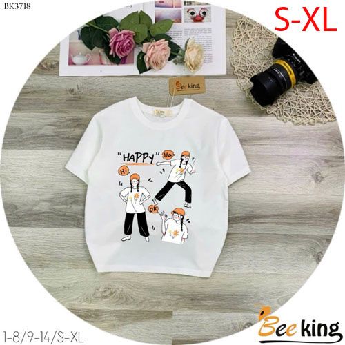 A485584 - Áo form rộng giấu quần cô gái Happy thun cotton 4c_Size S-XL