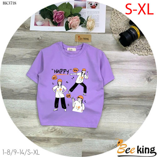 A485586 - Áo form rộng giấu quần cô gái Happy thun cotton 4c_Size S-XL