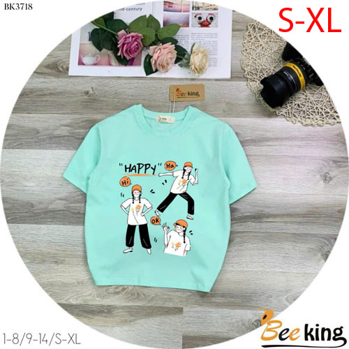 A485588 - Áo form rộng giấu quần cô gái Happy thun cotton 4c_Size S-XL