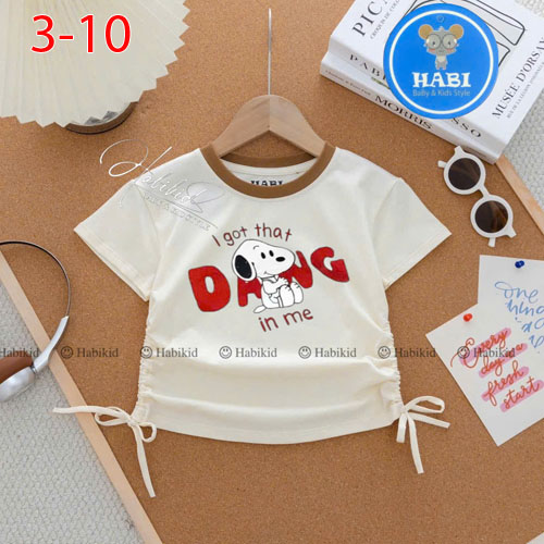 A485692 - Áo bé gái rút dây cổ viền màu Snoopy cute thun cotton 4c_Size 3-10