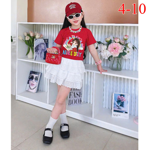 A486618 - Set váy siêu xinh cho bé gái áo thun cotton 4c in cô bé Nice Day chân váy lụa hàn 3 tầng_S