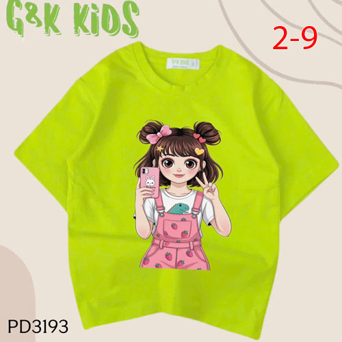 A486642 - Áo bé gái phom dài thun coton 4c in cô bé cầm điện thoại_Size 2-9