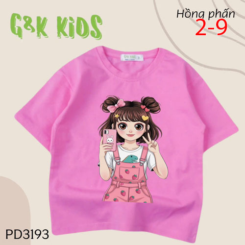 A486643 - Áo bé gái phom dài thun coton 4c in cô bé cầm điện thoại_Size 2-9