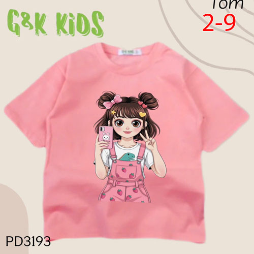 A486651 - Áo bé gái phom dài thun coton 4c in cô bé cầm điện thoại_Size 2-9