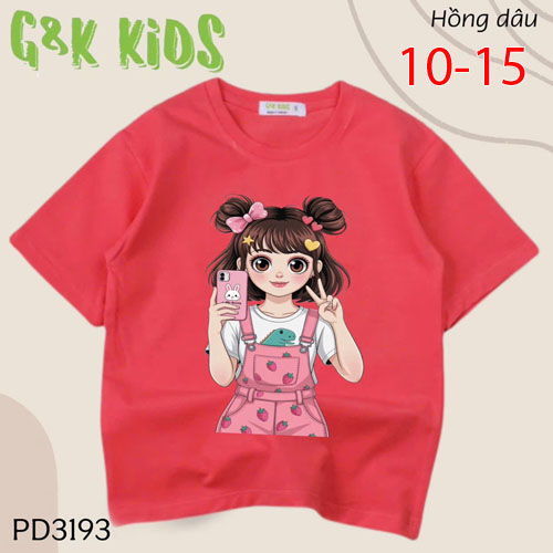 A486652 - Áo bé gái phom dài thun coton 4c in cô bé cầm điện thoại_Size 10-15