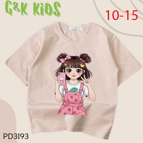 A486653 - Áo bé gái phom dài thun coton 4c in cô bé cầm điện thoại_Size 10-15