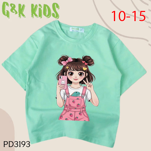 A486654 - Áo bé gái phom dài thun coton 4c in cô bé cầm điện thoại_Size 10-15