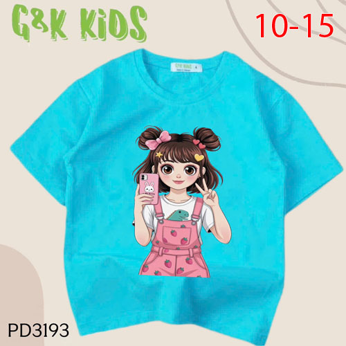 A486658 - Áo bé gái phom dài thun coton 4c in cô bé cầm điện thoại_Size 10-15