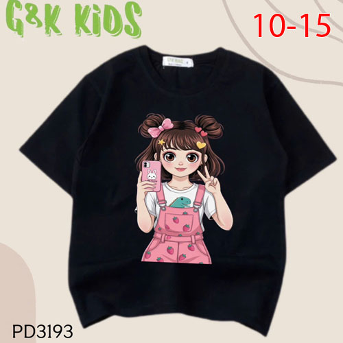 A486661 - Áo bé gái phom dài thun coton 4c in cô bé cầm điện thoại_Size 10-15