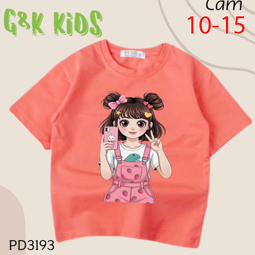 A486663 - Áo bé gái phom dài thun coton 4c in cô bé cầm điện thoại_Size 10-15