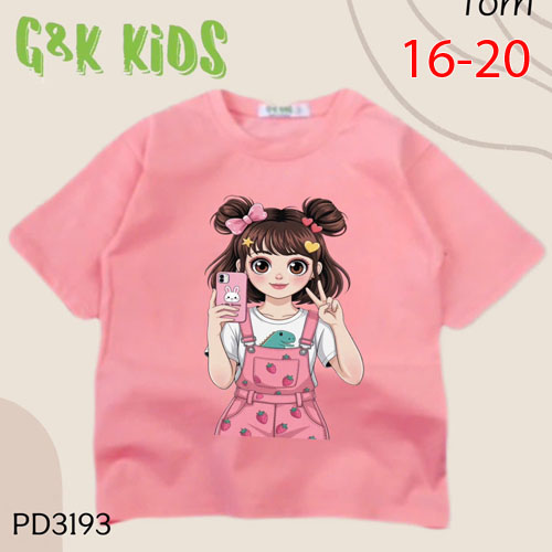 A486665 - Áo bé gái phom dài thun coton 4c in cô bé cầm điện thoại_Size 16-20