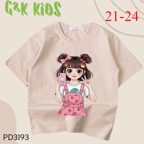 A486679 - Áo bé gái phom dài thun coton 4c in cô bé cầm điện thoại_Size 21-24
