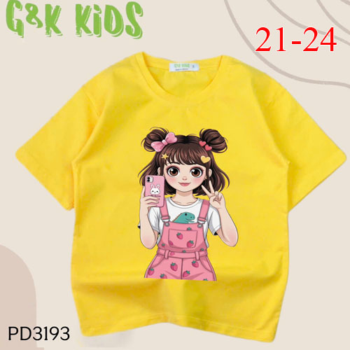 A486688 - Áo bé gái phom dài thun coton 4c in cô bé cầm điện thoại_Size 21-24