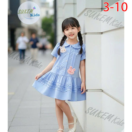 A487026 - Đầm thiết kế may đuôi cá nhún bèo cổ lá sen đính phun phụ kiện thỏ_Size 3-10