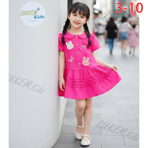 A487027 - Đầm thiết kế may đuôi cá nhún bèo cổ lá sen đính phun phụ kiện thỏ_Size 3-10