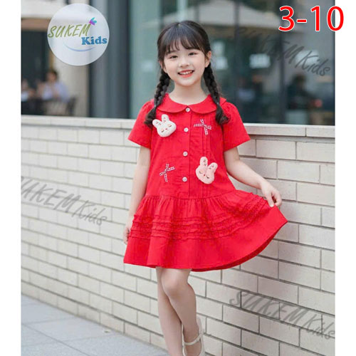 A487029 - Đầm thiết kế may đuôi cá nhún bèo cổ lá sen đính phun phụ kiện thỏ_Size 3-10