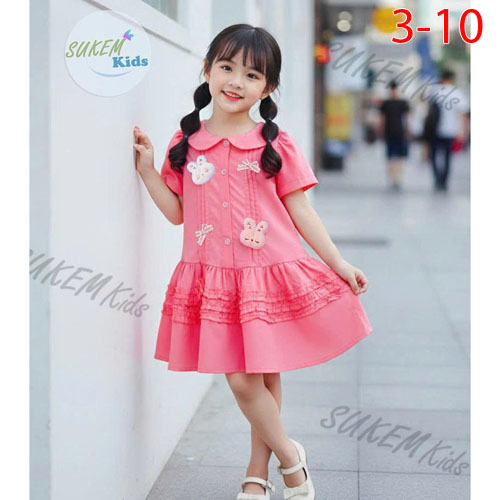 A487030 - Đầm thiết kế may đuôi cá nhún bèo cổ lá sen đính phun phụ kiện thỏ_Size 3-10