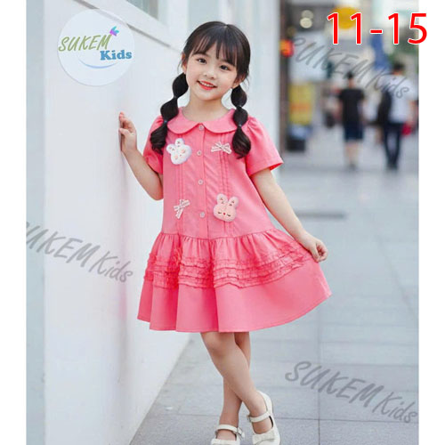 A487033 - Đầm thiết kế may đuôi cá nhún bèo cổ lá sen đính phun phụ kiện thỏ_Size 11-15