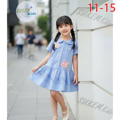 A487037 - Đầm thiết kế may đuôi cá nhún bèo cổ lá sen đính phun phụ kiện thỏ_Size 11-15