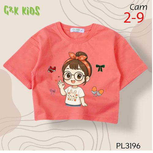A487170 - Áo bé gái phom lững chất thun coton 4c in cô bé mắt kính_Size 2-9