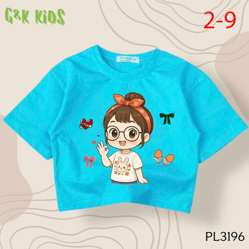 A487174 - Áo bé gái phom lững chất thun coton 4c in cô bé mắt kính_Size 2-9