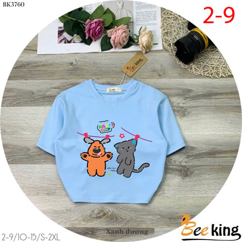 A487276 - Áo form lửng Happy day cún và mèo chất liệu cotton 4 chiều_Size 2-9