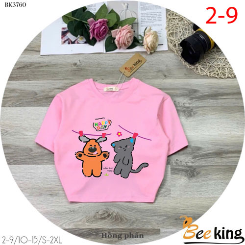 A487283 - Áo form lửng Happy day cún và mèo chất liệu cotton 4 chiều_Size 2-9