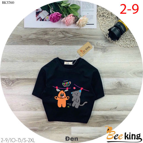 A487284 - Áo form lửng Happy day cún và mèo chất liệu cotton 4 chiều_Size 2-9