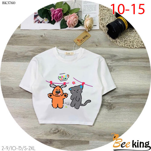 A487298 - Áo form lửng Happy day cún và mèo chất liệu cotton 4 chiều_Size 10-15