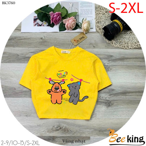 A487303 - Áo form lửng Happy day cún và mèo chất liệu cotton 4 chiều_Size S-2XL