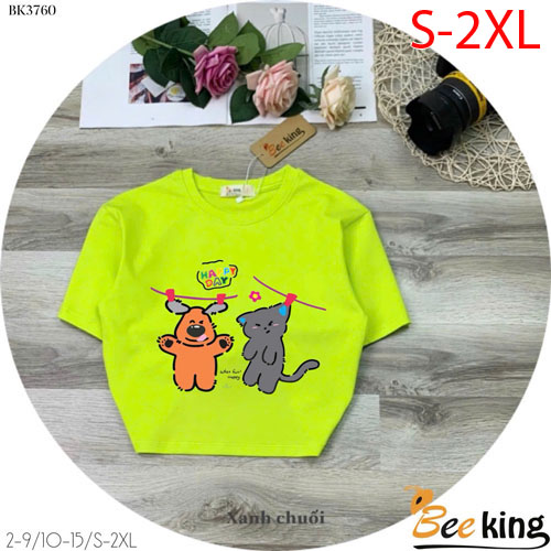 A487306 - Áo form lửng Happy day cún và mèo chất liệu cotton 4 chiều_Size S-2XL