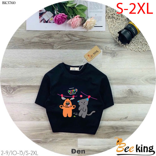 A487307 - Áo form lửng Happy day cún và mèo chất liệu cotton 4 chiều_Size S-2XL