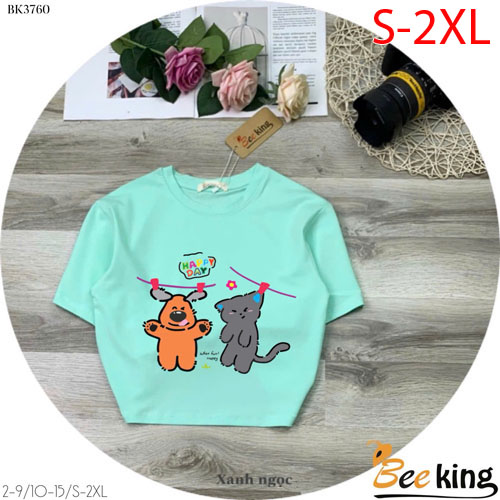 A487311 - Áo form lửng Happy day cún và mèo chất liệu cotton 4 chiều_Size S-2XL