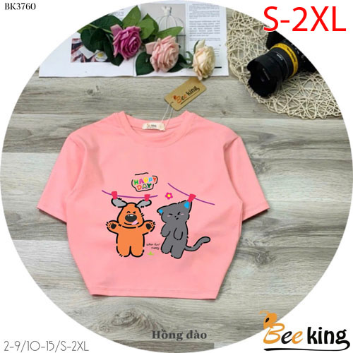 A487316 - Áo form lửng Happy day cún và mèo chất liệu cotton 4 chiều_Size S-2XL