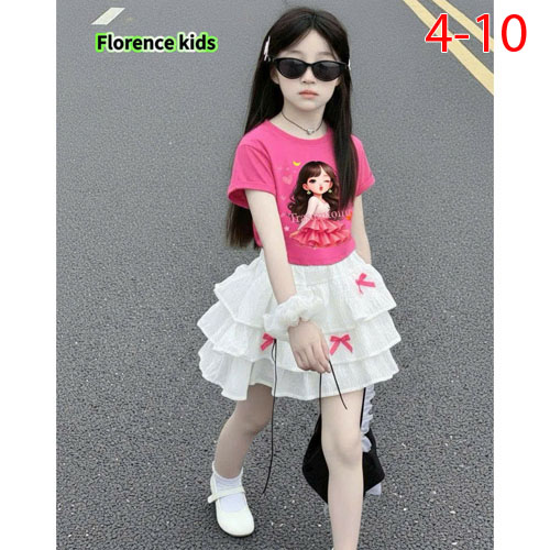 A487318 - Set váy cực xinh cho bé áo thun cotton 4c in cô bé chân váy lụa hàn 3 tầng đính nơ_Size 4-