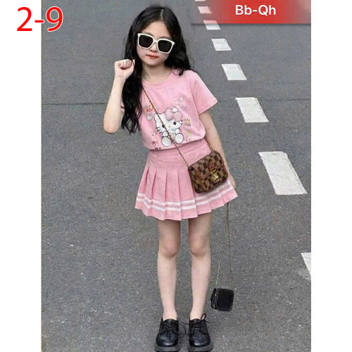 A487587 - Set váy áo thun cotton in Kitty chân váy kèm chíp trong có phụ kiện đi kèm_Size 2-9