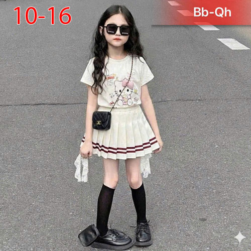 A487589 - Set váy áo thun cotton in Kitty chân váy kèm chíp trong có phụ kiện đi kèm_Size 10-16