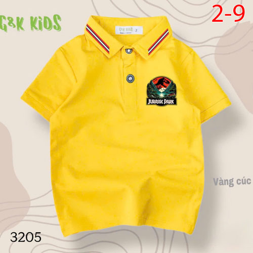A487734 - Áo cổ trụ bé trai chất thun coton 4c in logo khủng long JURASSK PARK_Size 2-9