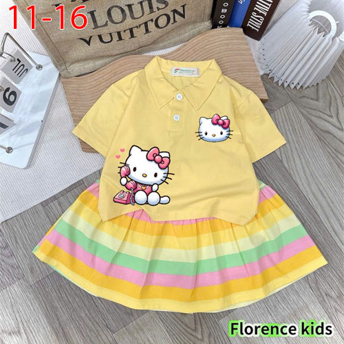 A487783 - Set bé gái siêu cute, màu sắc cuốn hút chất thun cotton 4c in Kitty chân váy cotton xếp ly