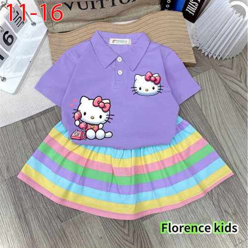 A487786 - Set bé gái siêu cute, màu sắc cuốn hút chất thun cotton 4c in Kitty chân váy cotton xếp ly