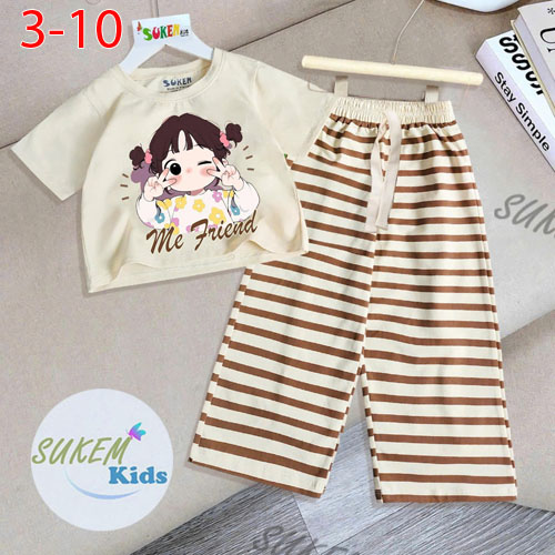 A487790 - Set bé gái thun coton 4c áo may ngắn tay dễ thương với hình chibi quần dài ống suông chạy