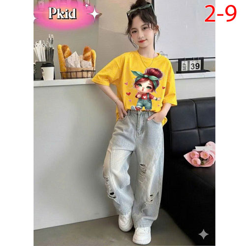 A487812 - Sét rin siêu phẫm cho bé gái áo chất thun cotton in cô bé quần rin dài lưng thun_Size 2-9