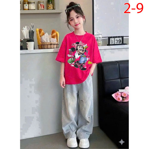 A487816 - Sét rin siêu phẫm cho bé gái áo chất thun cotton in cô bé quần rin dài lưng thun_Size 2-9