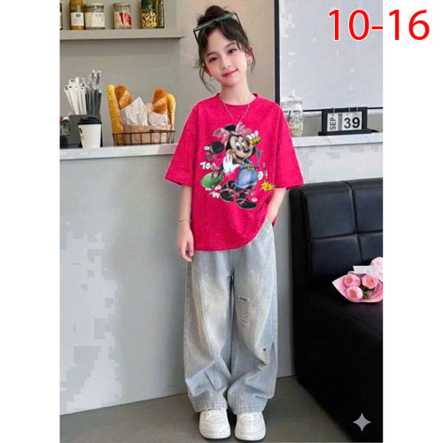 A487817 - Sét rin siêu phẫm cho bé gái áo chất thun cotton in cô bé quần rin dài lưng thun_Size 10-1