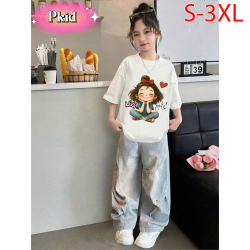 A487826 - Sét rin siêu phẫm cho bé gái áo chất thun cotton in cô bé quần rin dài lưng thun_Size S-3X