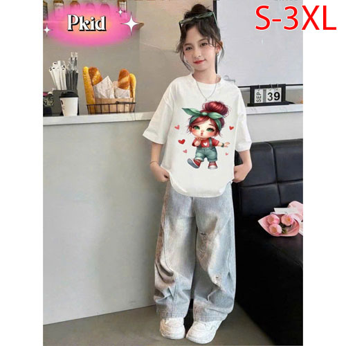 A487827 - Sét rin siêu phẫm cho bé gái áo chất thun cotton in cô bé quần rin dài lưng thun_Size S-3X