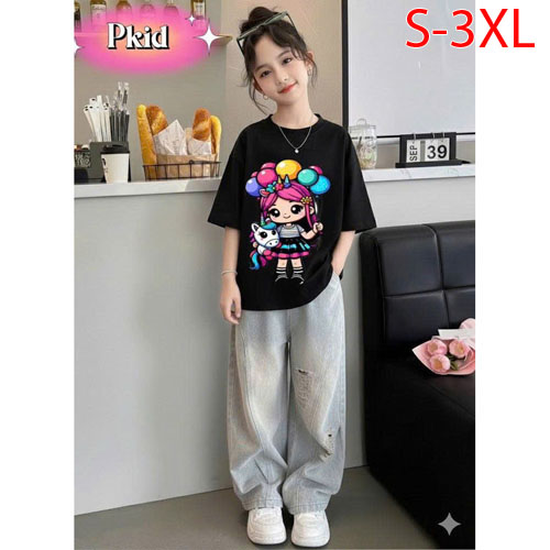 A487828 - Sét rin siêu phẫm cho bé gái áo chất thun cotton in cô bé quần rin dài lưng thun_Size S-3X